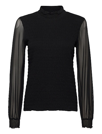 Blouse with turtleneck and transparent sleeves