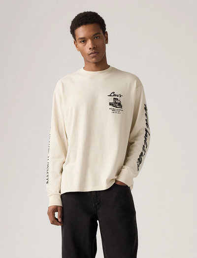 Klassikaline pikkade varrukatega T-särk saab vintage-stiilis uuenduse graafikaga rinnal ja varrukatel. Mugav disain muudab selle ideaalseks igapäevaseks kandmiseks.