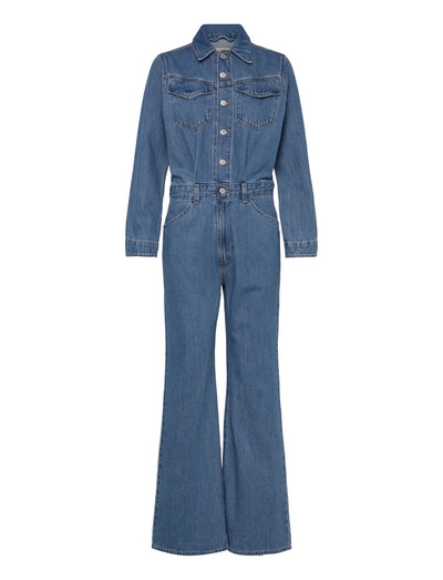 Oma nööbitava disaini ja laienevate säärtega pakub see teksakombinesoon retrohõngulist siluetti. Pikkade varrukatega rõival on kraega kaelus ja rinnataskud, mis ühendavad klassikalised tööriiete detailid moodsa, figuuri meeldiva lõikega.