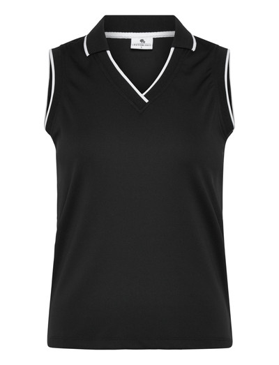 Venib neljas suunasKoge piiramatut liikumisvabadust golfiväljakul selle varrukateta polosärgiga, mis on valmistatud kergest, hingavast tehnilisest kangast. Disainitud kõrge sooritusvõime jaoks, sellel on naiselik krae ilma nööpideta ja kontrastsed soonikud krael ja varrukaotstes. Materjal on väga veniv ja ei vaja triikimist, tagades värske välimuse kogu päevaks. Viimistletud diskreetse Lexton Links® logoga vasakul varrukal.
