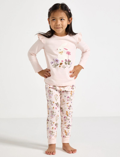 See pehmest puuvillasest trikotaažist armas trükimustriga pidžaamakomplekt tagab mugava une. Pikkade varrukatega ülaosa on kaunistatud õrna õlavolangiga, pükstel on aga paindlik elastne vöökoht, mis tagab täiusliku istuvuse.