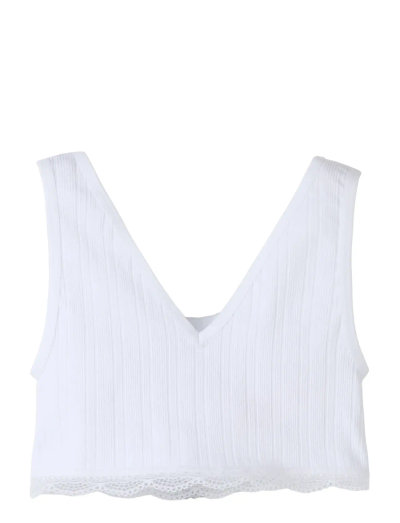 Need bralett-stiilis topid on pehmed ja mugavad, sobides ideaalselt igapäevaseks kandmiseks. Allalastud silmustega detailid loovad ainulaadse ja võluva välimuse, mida täiustab õrn tikand.