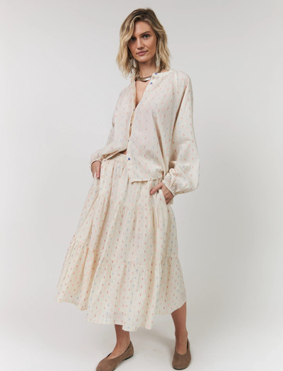See midi-seelik on kerge ja naiselik, pehme langevuse ja peente tekstuursete detailidega kangas. Disainitud kihiliste paneelidega, mis loovad liikumist ja volüümi, ning elastne vöökoht tagab kõrge mugavuse ja paindliku sobivuse. Stiilige see kokku sobiva särgiga, et luua elegantne komplekt.