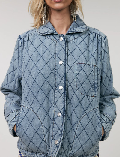 Sünteetiline isolatsioonSee tepitud teksakangast konstruktsioon annab sellele jakile ainulaadse, dekoratiivse mustri, lisades klassikalisele disainile laheda nüansi. Kerge polsterdusega sobib see hästi üleminekuperioodi rõivaks või lisakihiks aastaringselt. Sellel on nähtavad kontrastsed õmblused, mis rõhutavad tepimist ja loovad käsitöö tunde. Disain sisaldab nööpkinnitust, rinnataskut, küljetaskuid, pikkade varrukatega nööbitavaid mansette ja pehmet, ümarat särgikraed.