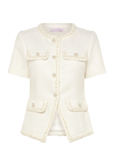 Struktuurne siluett määratleb seda šikki tviidist topi, mida rõhutavad lühikesed varrukad ja dekoratiivsed taskud. Pärlnööbid lisavad elegantse puudutuse, muutes selle mitmekülgseks rõivaesemeks nii päevaseks kui ka õhtuseks kandmiseks. Kombineeri see lühikeste pükstega, et luua koordineeritud välimus.