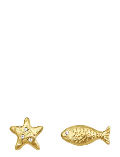 Nendel kõrvarõngastel on asümmeetriline disain, üks kõrvarõngas on kujundatud meritähe ja teine kala kujuliseks. Mõlemat ehet kaunistavad õrnad kividetailid.