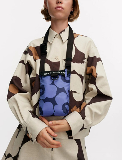 Hoia oma telefon turvaliselt ja käepärast selles stiilses taskukotis. Reguleeritav õlarihm koos plastikust pandlaga tagab mugava sobivuse. Kott on valmistatud taaskasutatud polüestrist ja kaunistatud ikoonilise Unikko mustriga, mille on disaininud Maija Isola 1964. aastal. Sellel on tõmblukk, võtmehoidja ja Marimekko silt esiküljel.