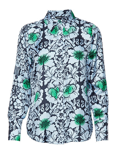 The dark blue, light blue and green Juhannus (Midsummer) pattern decorates the Toiveikas button-up shirt, which is made of silk. The shirt has a button closure in the front, a back yoke seam with a pleat and long sleeves with wide cuffs and slit openings.Õhka sundimatut moetunnetust ja funktsionaalset stiili selle tipptasemel Skandinaavia kaubamärgiga.