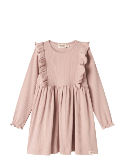 Long-sleeved dress with frill details. The length of the dress goes just above the knee.