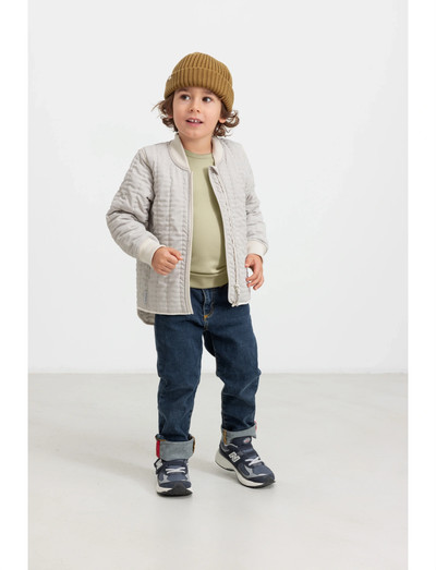 Thermo jacket with a slim fit and with side pockets. The jacket can be folded up at the back using the small velcro details, if you do not want it to be longer on the back. The jacket closes with a zipper.