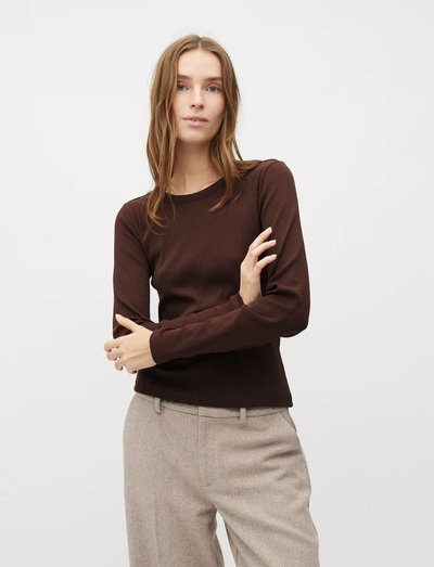 See pikkade varrukatega topp on mitmekülgne täiendus igale garderoobile, millel on klassikaline ümar kaelus ja peenelt tekstureeritud viimistlus. Liibuv lõige muudab selle ideaalseks kihiliseks kandmiseks või eraldi kandmiseks.