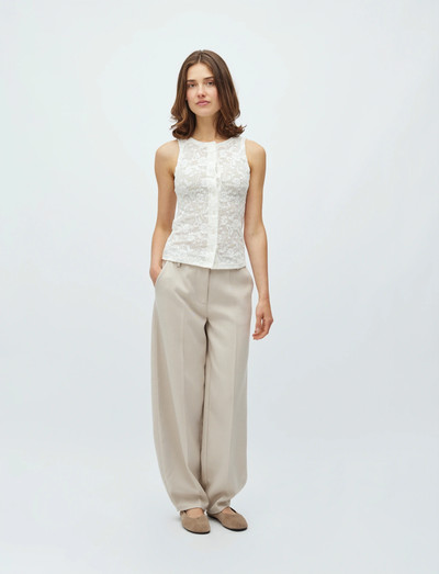 Õrn pits kaunistab seda varrukateta topi, muutes selle elegantseks valikuks kihiliseks riietumiseks või eraldi kandmiseks. Nööpidega esikülg lisab klassikalist sarmi, samas kui keerukas lillemuster rõhutab selle naiselikku veetlust. Mitmekülgne ese igasse garderoobi.
