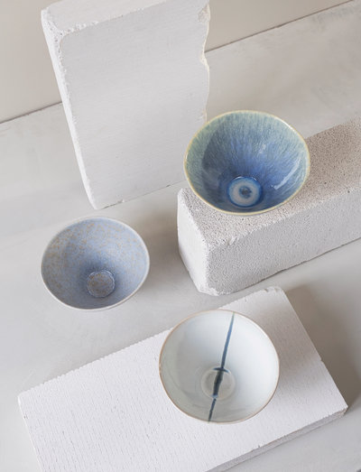 "Mette Ditmeri väikesed ELEMENTSi kausid on valmistatud kivitehnikast. Iga kauss on kaunistatud erinevate siniste toonidega, millel on nii läikiv kui ka matt viimistlus. Mänguline glasuuride ja erinevate siniste toonide kasutamine annab igale kausile oma iseloomu, tagades, et ükski kauss ei ole täpselt samasugune.