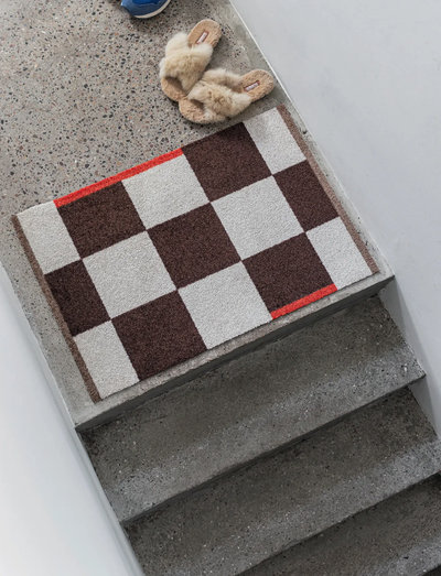 Add a personal touch to your hallway with the SQUARE mat from Mette Ditmer. The graphic pattern in brown and off-white is given a modern twist with bold red accents that bring both energy and character to the design.