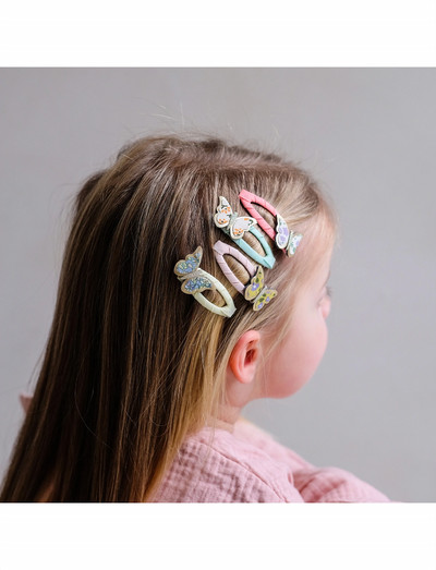Nendel armsatel juuksekaunistustel on satiinpaelaga kaetud klõpsud, mida kaunistavad võluvad liblikad. See neljast komplekt on ideaalne, et lisada igale soengule veidi omapära.