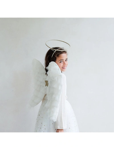 Angel wings with elastic shoulder straps in beautiful feather-like tulle.Decorated with a big golden star.