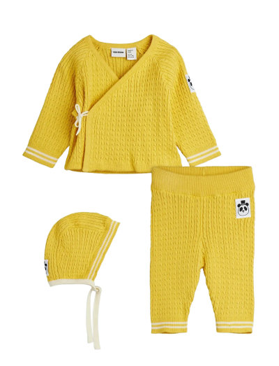 See pehme kaablitehnikas beebikomplekt on valmistatud 100% orgaanilisest puuvillast. Komplekti kuuluvad kardigan lipsuga, müts ja elastse vöökohaga püksid, mis tagavad mugava istuvuse.