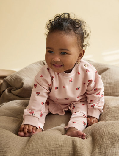 Sweatshirt from Minymo. The sweatshirt features an all-over print. It is decorated with a frill at the waist. The sweatshirt has buttons at the collar for easy dressing. Certified acc. to OEKO-TEX® STANDARD 100 Cert. No. 2276-364 DTI