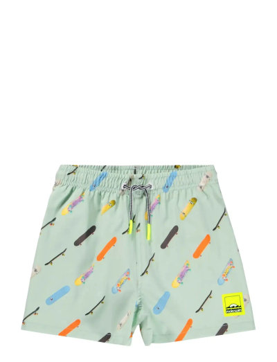 Sporty swim shorts are perfect for kids who love to play and splash. Designed with a mid-thigh length and relaxed fit, they feature a comfortable elastic waistband and adjustable drawstring for a secure fit. Equipped with UV50+ protection, these shorts are ideal for sunny days. The soft inner mesh adds comfort, and a practical back pocket provides handy storage for treasures during playtime.