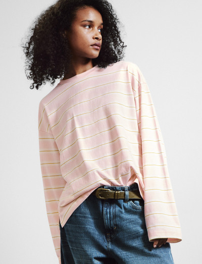 A long-sleeved T-shirt with a relaxed silhouette and everyday ease. Crafted from soft cotton jersey, it features a classic crew neckline with a ribbed trim, slightly dropped shoulders, and subtle side slits at the hem.