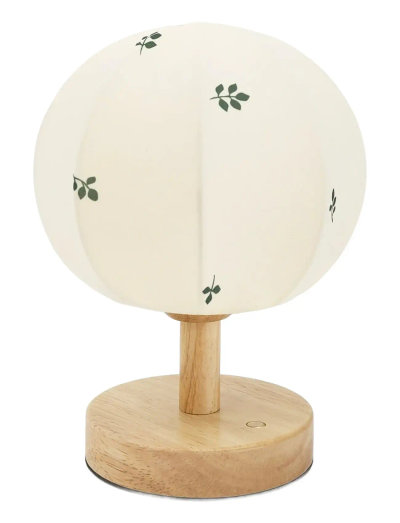 The cozy night lamp is designed to create a comforting and relaxing atmosphere for your little one. Featuring a wooden foot and a soft textile lampshade available in the charming "Over the Moon" and "Leaf" prints, the lamp adds warmth and style to any nursery or child's room.