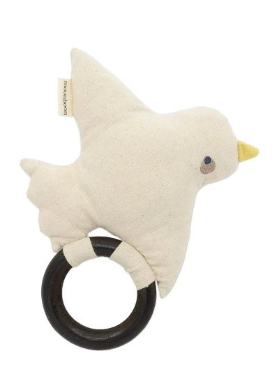 Introducing the charming Ole Lukøje bird rattle, a soft, cozy bird paired with a smooth, easy-to-hold wooden ring handle.