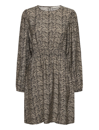 Pikkade varrukate ja vöökohalt liibuva lõikega lühike kleit loob meeldiva silueti. Üldpind trükk lisab visuaalset huvi, muutes selle silmapaistvaks rõivaesemeks erinevatel puhkudel.