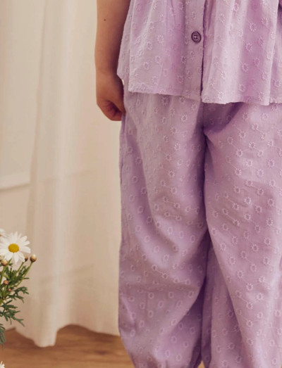 Need kerged ja õhulised kootud püksid on kaunistatud õrna lillemustriga. Elastne vöökoht tagab mugava istuvuse, samas kui kroogitud sääreavad lisavad mängulist võlu. Valmistatud GOTS-sertifikaadiga orgaanilisest puuvillast.