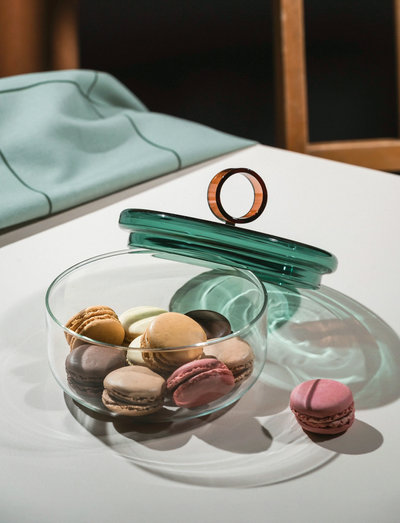 The Loop collection combines functionality with playful colors and shapes. The whole collection carries the same round detail, a loop, in its design which creates a circle like continuity and compatibility to all the items in the series. Items are hand made from borosilicate glass.