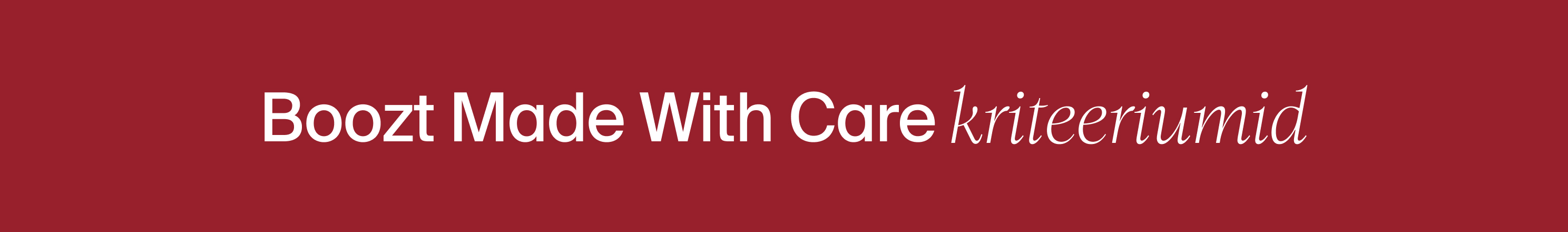 Vastutustundlike moerõivaste, puhaste ilutoodete ja muude toodete spetsiaalselt väljavalitud valik on saadaval kõigile klientidele, meestele, naistele, lastele ja kõigile vahepealsetele. See hõlmab riideid, mis on valmistatud orgaanilisest puuvillast, taaskasutatud polüestrist, vastutustundlikust villast ja muudest materjalidest, et piirata kliimamuutusi ja globaalset soojenemist. Boozti Valmistatud hoolega poes on kõik, mida vajad, alates sinistest teksadest kuni spordiriiete, jalanõude, särkide, trikoode, jakkide, mantlite, aksessuaaride, aluspesu ja palju muuni. Kuigi Boozt ei taha neid riideid, ilu- ja kodutarbeid nimetada "ökoloogilisteks", "rohelisteks" või "jätkusuutlikeks", sest neil sõnadel puudub tähendus ja konsensus, on Boozt siiski valmis tõstma esile tooteid ja kaubamärke, mis proovivad erinevaid viise uuenduste tegemiseks ja oma mõju piiramiseks inimestele ja planeedile. Rohepesu vältimiseks tugineb Boozti Valmistatud hoolega pood kindlalt kolmandate isikute poolt auditeeritud andmetele ja rangetele nõuetele. See aitab Boozti e-poel vältida ebamääraseid sõnastusi, valesilte ja varjatud kompromisse. Kui soovid saada lisateavet või kui sul on küsimusi Boozti e-poe toodete jätkusuutlikkuse kohta, võta meiega ühendust aadressil sustainability@boozt.com