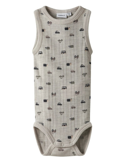 Sellel pehmest villast valmistatud varrukateta bodil on mänguline automuster. Disain tagab mugavuse ja liikumisvabaduse, mistõttu on see ideaalne kihiliseks riietumiseks või soojematel päevadel eraldi kandmiseks.