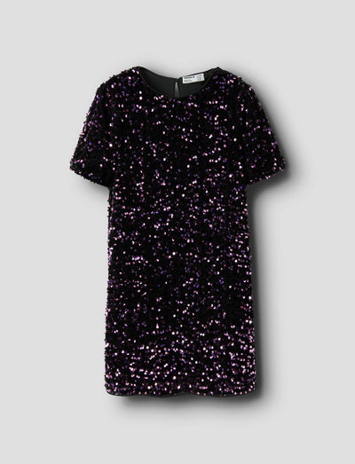 See kootud kleit sobib suurepäraselt pidudeks ja erilisteks sündmusteks ning sellel on tekstuuriga pind ja klassikaline ristikmuster. Sellel on lühikesed varrukad, ümmargune kaelus ja tavaline lõige ning taga on nööpkinnitus. Kleiti on kaunistatud litritega, mis lisavad sära.