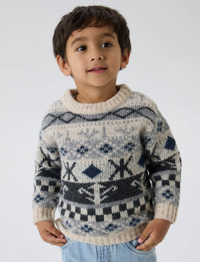 Sellel kootud pulloveril on detailne koemuster, mis loob struktuurse tekstuuri ja ajatu välimuse, mis sobib suurepäraselt aktiivsete laste soojas hoidmiseks talvekuudel. Pikkade varrukatega disainil on soonikkoes kätised ja alläär, mis tagavad tiheda ja mugava istuvuse.