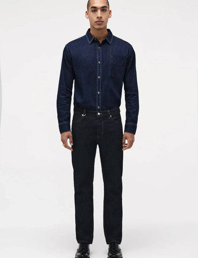 Need teksad on lõdva sirge säärega lõikega, mis on kergelt kitsenev, istuvad mugavalt vöökohal ja langevad kenasti kingade peale. Vintage tööriietest inspireeritud tavaline ülaosa säilitab puhta silueti. Disain ühendab klassikalise stiili kaasaegsete detailidega, muutes need mitmekülgseks rõivaesemeks, mida on lihtne nii üles kui ka alla riietada. Neil on viie taskuga konstruktsioon ja nööpkinnis, millele on lisatud signatuurparandusõmblus ja rõngas.