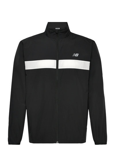 This woven jacket features water-resistant and moisture-wicking fabric for comfort.