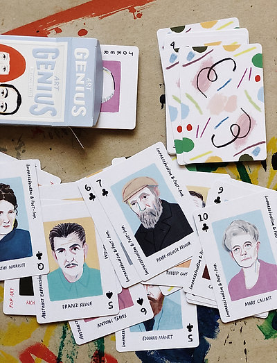 Värskendage oma kaardimänge nelja suurepärase kunstiliikumise tipptalentidega: süda - popkunst, rist - impressionism/postimpressionism, pikk - abstraktne ekspressionism, ruudu - sürrealism.