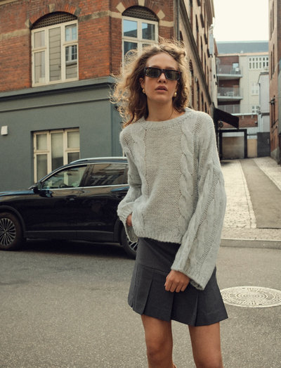 See pehme ja ümara lõikega kampsun on varrukatel ja kehaosal laia palmikmustriga. Vaba lõige ja täispikk siluett on täiendatud avarate varrukatega, luues vabaaja ja mugava välimuse.
