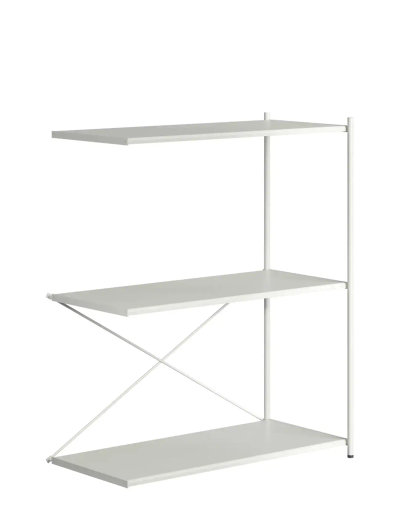 Arturo presents a versatile shelving arrangement crafted from powder-coated metal, available in elegant light grey.