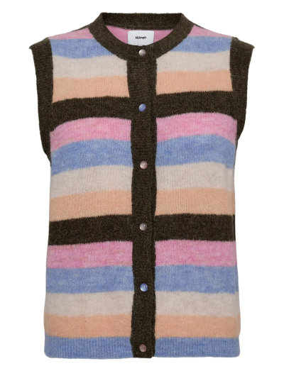 See triibuline nööbitav vest on mitmekülgne kihilise riietuse variant. Varrukateta disain muudab selle ideaalseks soojema ilmaga või lisab veidi soojust ilma mahukuseta.
