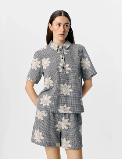 See kootud topp on mitmekülgne täiendus igale garderoobile. Särgi krae ja lühikeste varrukatega pakub see tavalist lõiget, mis sobib ideaalselt nii kontoris kandmiseks kui ka vaba aja veetmiseks. Tugev kangas tagab struktureeritud välimuse, muutes selle usaldusväärseks valikuks igapäevaseks kandmiseks.