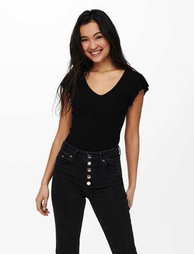 See topp on mugava tavalise lõikega ja sobib ideaalselt igapäevaseks kandmiseks. Sellel on volangidega lühikesed varrukad ja klassikaline ümar kaelus.