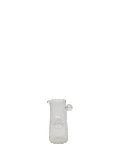 The Kuki Jug features bubble splashes that add a touch of whimsy to its minimalist design. Its elegant shape blends functionality with timeless aesthetic, making it perfect for any table setting. Use it for everyday dining or special occasions. Being mouthblown, each jug will vary in size, adding to its unique charm.
