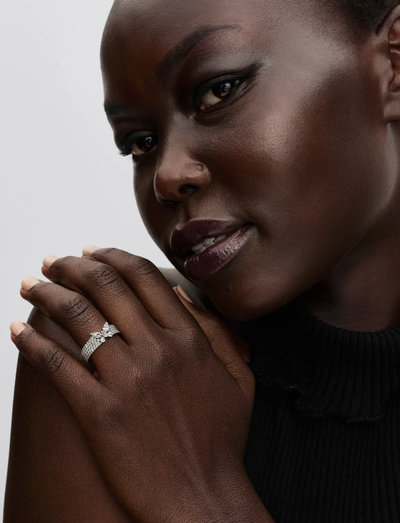 See sterlinghõbedast sõrmus on särav ja pilkupüüdev ehe, mida kaunistab õrn liblikamotiiv. Liblikat ehivad arvukad läbipaistvad tsirkooniumkivid, mis lisavad igale rõivakomplektile sära ja elegantsi.