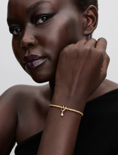 Wrapped heart 14k gold-plated charm with white lacquered artificial pearl - Ripatsid