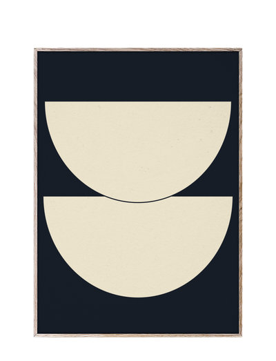 Poolringid i - sinine on tugevate vormide ja bauhausi kunsti- ja disainikoolkonnast inspireeritud värvipaleti taustal. taani loovisik nina bruun on kasutanud lihtsaid kattuvaid poolringe, et luua peent sügavustunnet, mis laseb sarja värvidel esile tulla. raam ei kuulu komplekti.