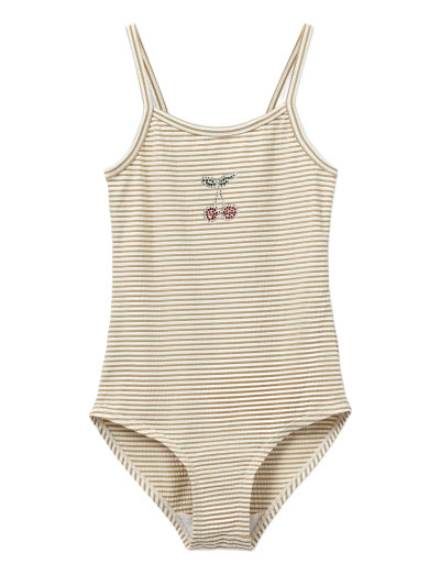 See ujumistrikoo sobib suurepäraselt sulistamiseks ning sellel on õhukesed paelad ja mänguline kirsidetail. Subtiilsed triibud lisavad sellele mugavale disainile veidi lõbusust.