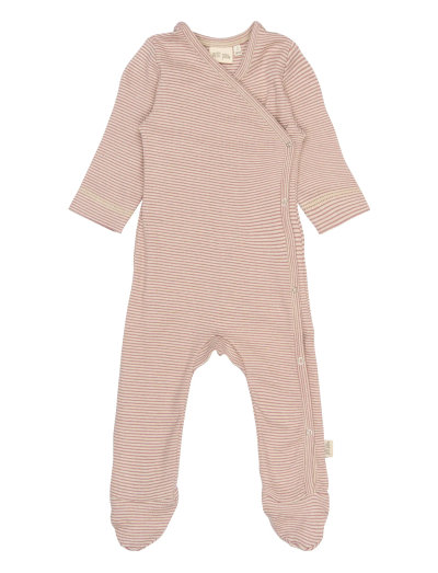 This baby unisex footed jumpsuit offers gentle comfort for everyday wear. Crafted from a soft blend of 52% organic cotton, 44% modal, and 4% elastane, it feels smooth on delicate skin while adding a touch of stretch for easy movement. The wrap-over front with snap buttons makes dressing and nighttime changes simple without lifting or twisting your little one. Built-in feet keep tiny toes warm, and the long sleeves provide extra coverage. The subtle all-over stripe gives a timeless, calm look suitable for any wardrobe.- Soft organic-cotton/modal blend with comfortable stretch- Wrap-over snap closure for quick, fuss-free changes- Footed design for warmth and full coverage- Gentle unisex look ideal for newborns and beyond
