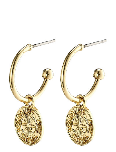 Show off your mood, style, and unique qualities, with these gold-plated semi-hoops from Pilgrim's Classic collection. The traditional hoops have a, small, coin pendant that adds a chic bohemian touch to your outfit.