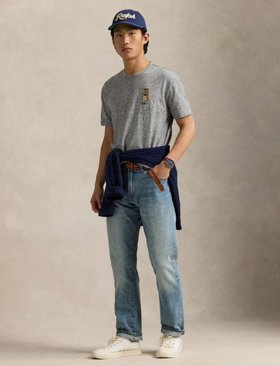Sellel raskekaalulisel T-särgil on klassikaline ümar kaelus ja mugav lõige. Vasakul rinnal on tikitud karu, kes kannab kilpkonnakilpidega prille ja kaubamärgiga pulloveri.