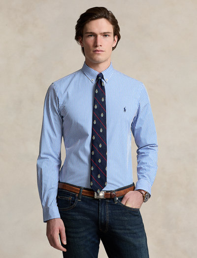 Nööpidega kraeSee klassikaline triibuline särk Polo Ralph Laurenilt on mitmekülgne lisand igasse garderoobi. Sellel on kitsas istuvus, nööpidega kaelus ja pikad varrukad. Särk on valmistatud mugavast ja hingavast venivast popliinist.
